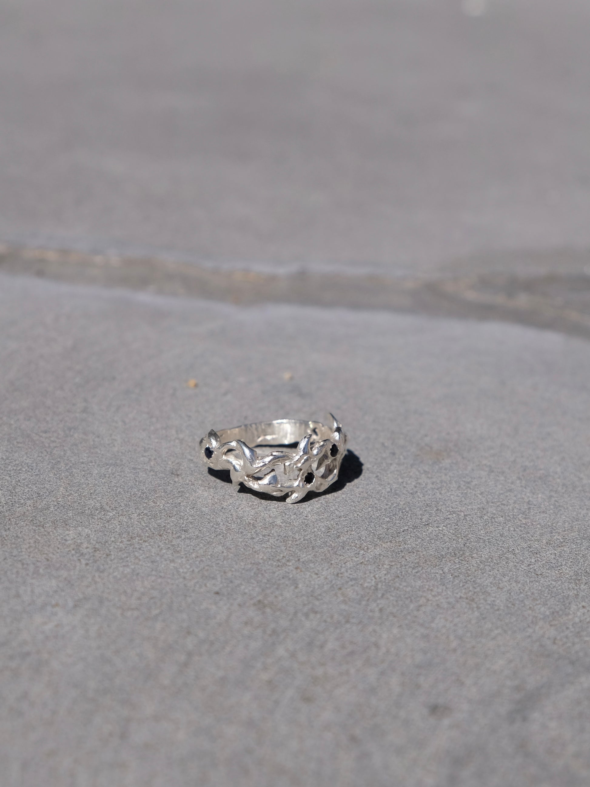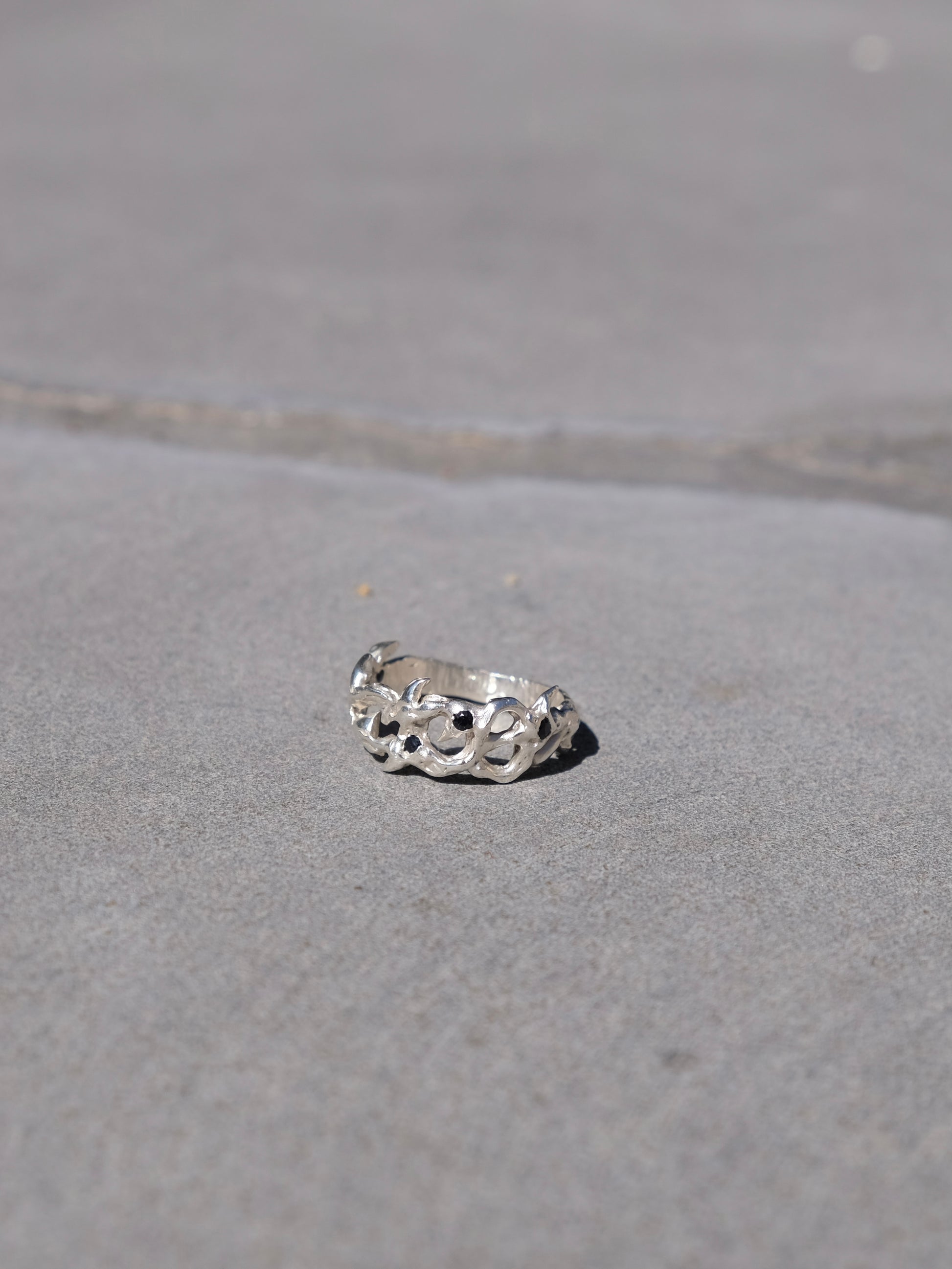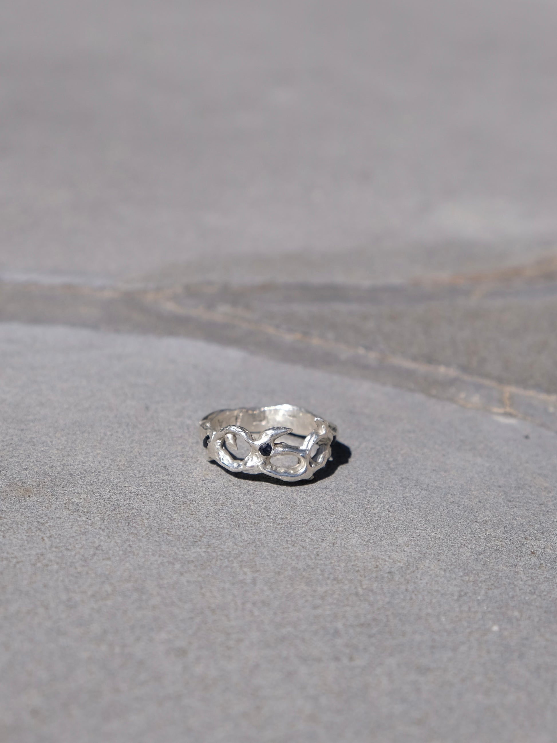 solid 925 silver, natural black sapphires